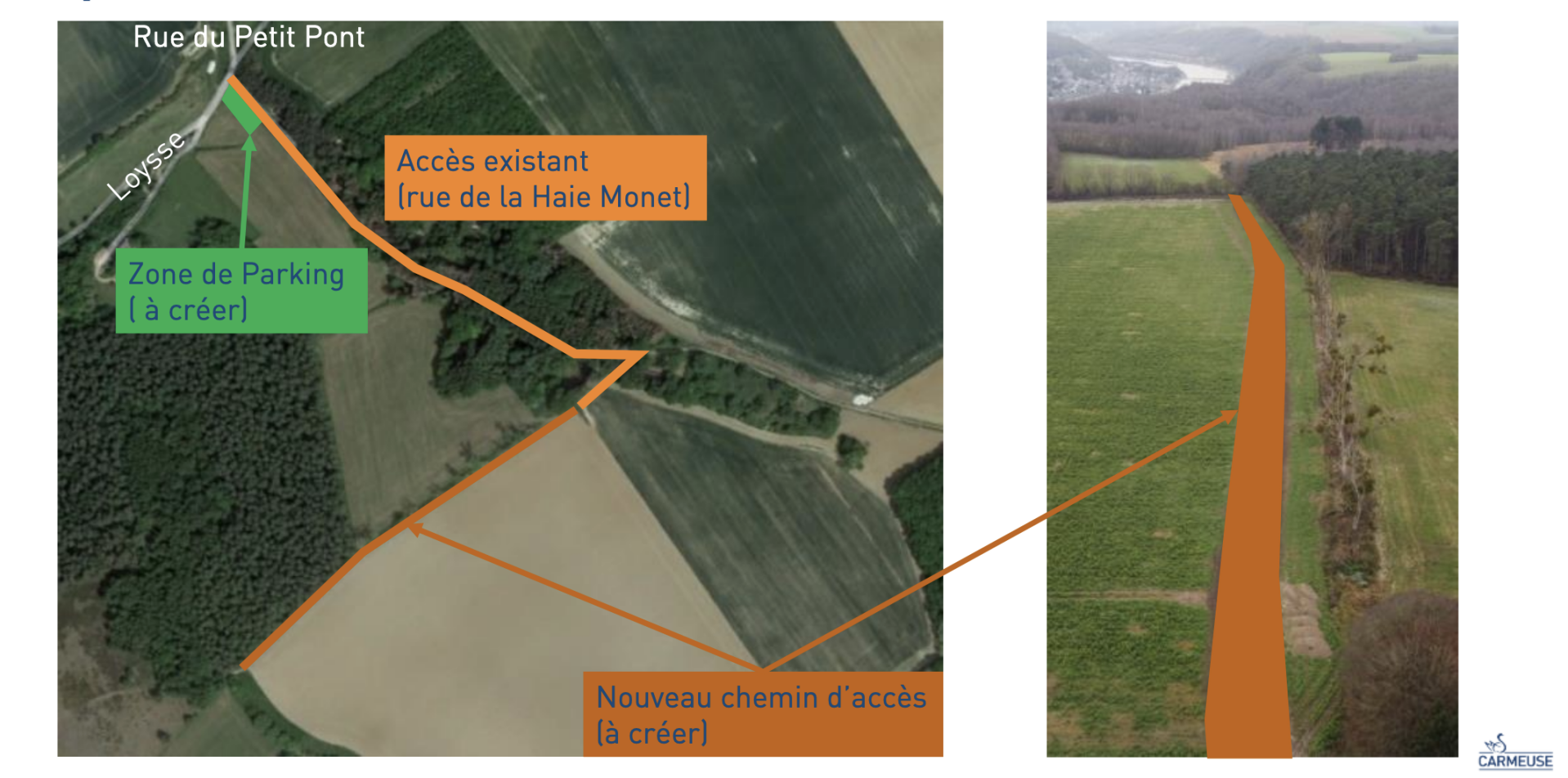 Carmeuse creuse au plus près de toutes les limites permises, au ras des routes, au ras clôtures des jardins ! (cf. photo de droite)